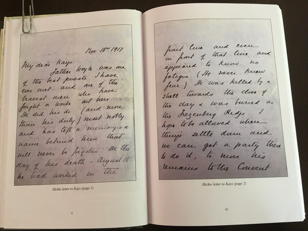 Note to self: advise Commonwealth War Graves Commission of evidence supporting an amendment to their record of the deaths of Fr Doyle and Second Lieutenants Marlow and Green from 17th August to 16th August 1917. Also, advise Gordon Corrigan and the fact that Fr Doyle’s personal file is at National Archives (it could not be located at the time of his research, but does not reveal anything about the VC issue, although there is other fascinating stuff).