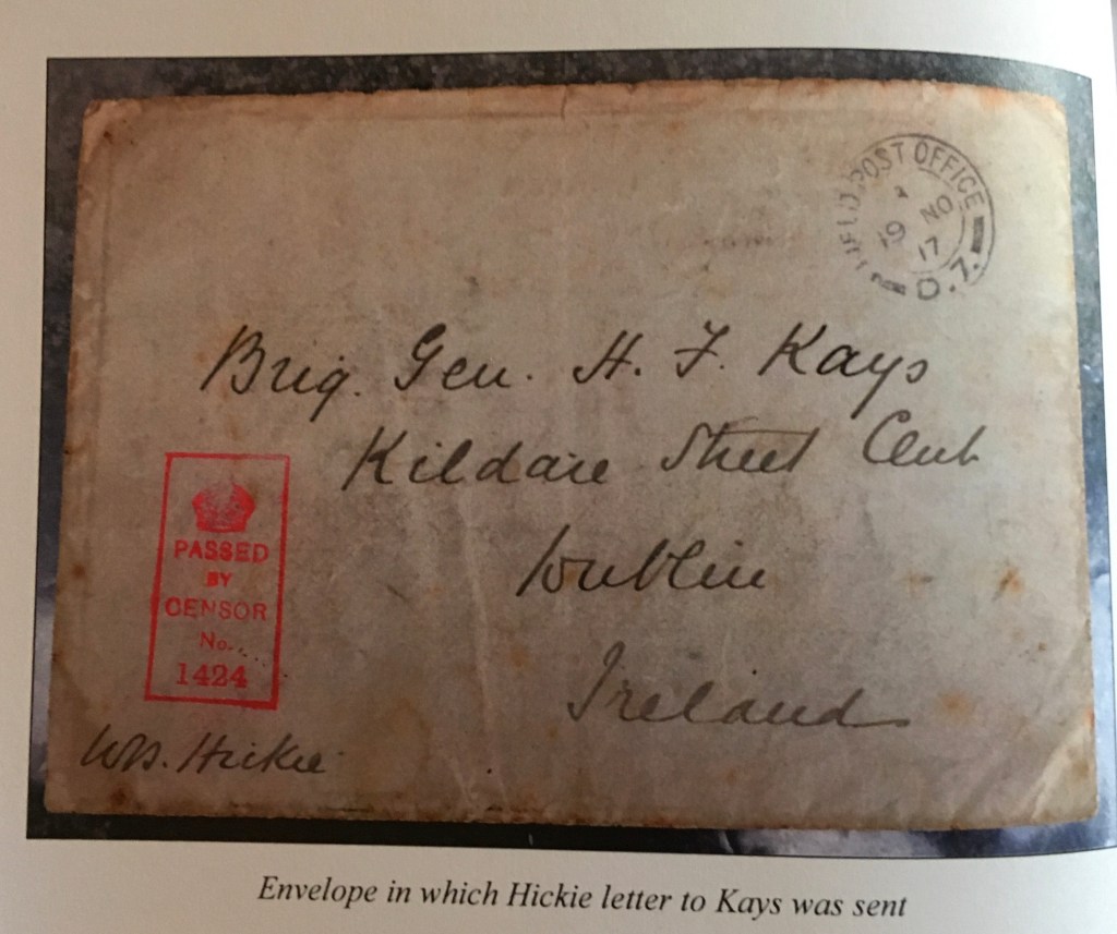 A little over ten years ago I was sitting in an archive when I had a “Eureka” moment. Rewind 103 years to this day in 1917 when an envelope was despatched from France, postmarked Field Post Office D7, 19 No 17, stamped “Passed by Censor” with the signature Wm. Hickie underneath. The writer of the letter inside was also Wm. Hickie and it was private correspondence to a friend.