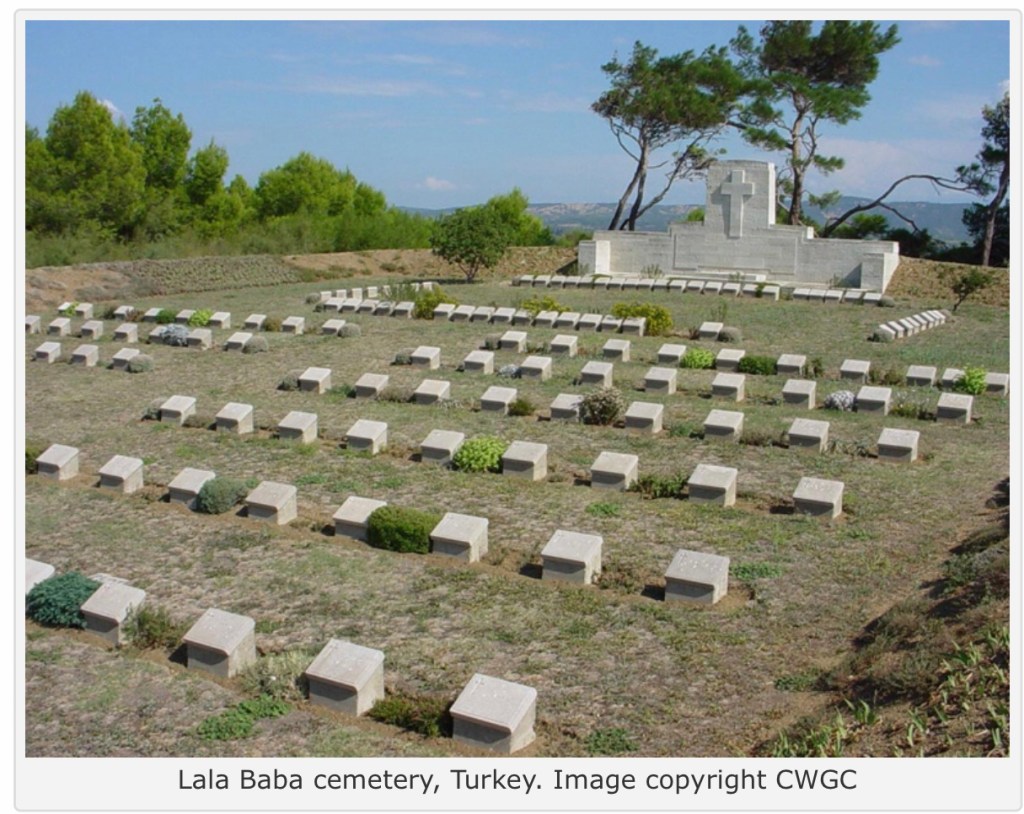 We all know that the ANZACs were a cog in a bigger machine of nationalities who fought at Gallipoli and this blog is about one of those “others”. Charles Frederick Ball, an Englishman who served with an Irish regiment, lies in LaLa Baba cemetery, a cemetery I have visited on all three occasions that I have been to Gallipoli with Peter Hart Battlefield Tours. However, I have only recently learnt Fred’s story, so it seems I will have to visit again!